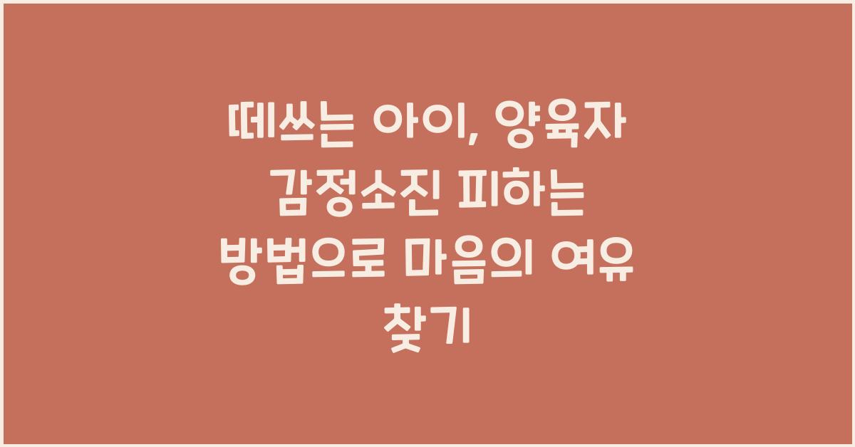 떼쓰는 아이, 양육자 감정소진 피하는 방법: 문제의 시작양육자는 아이의 성장에 큰 영향을 미치는 존재입니다. 하지만 때로는 아이가 떼를 쓰는 모습을 보며 힘들어하는 경우가 많습니다. 떼쓰는 아이는 자신의 욕구를 표현하는 방식으로, 부모나 양육자는 그 상황에서 감정적으로 힘든 과정을 겪습니다. 떼쓰는 아이의 행동은 일시적이지만, 관리를 잘 해주지 않으면 양육자는 감정적으로 소진될 수 있습니다. 그래서 오늘은 떼쓰는 아이, 양육자 감정소진 피하는 방법에 대해 함께 고민해보려 합니다.떼쓰는 행동은 여러 가지 원인에 의해 발생합니다. 아이가 필요한 것을 얻기 위해, 또는 단순히 불편함을 해소하기 위해 떼를 쓰는 경우가 많죠. 이때 양육자는 아이를 무조건적으로 나쁜 행동으로 판단하기보다는, 그 뒤에 숨겨진 아이의..