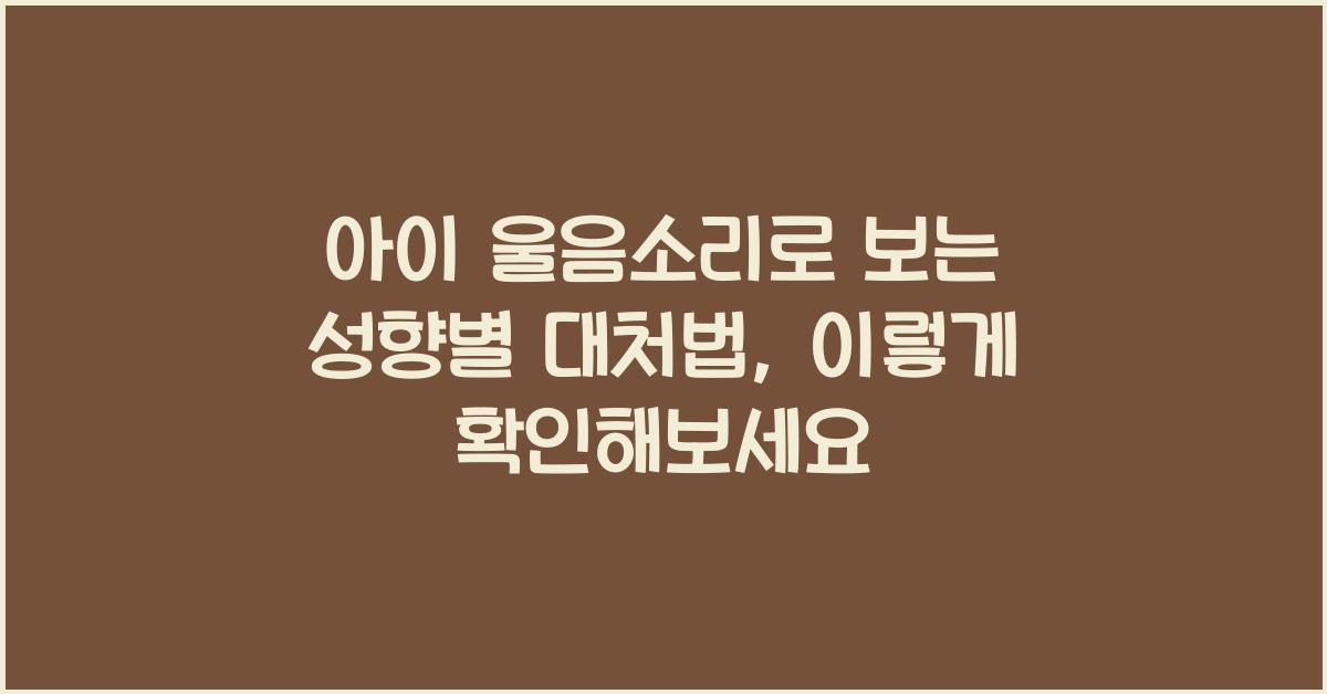 아이 울음소리의 중요성아이의 울음소리는 단순한 소리가 아닙니다. 부모에게 제공하는 가장 중요한 신호 중 하나로, 아이가 자신의 감정을 표현하는 방법이죠. 아이 울음소리로 보는 성향별 대처법을 이해하면 아이의 필요를 더 잘 파악할 수 있습니다. 울음소리에는 여러 가지 종류가 있으며, 그에 따라 부모의 대처法도 달라져야 합니다.첫 번째로, 배고플 때의 울음은 특징이 있습니다. 보통 짧고 연속적이며, 배고픔을 시급히 알리기 위한 신호입니다. 이러한 울음소리를 들으면 부모님은 즉각적으로 아이를 먹여야 한다는 긴급함을 느끼게 되죠. 다른 한편으로, 피곤한 경우에는 울음이 더 애절하고 느리게 나올 수 있습니다. 이러한 점에서 아이 울음소리로 보는 성향별 대처법을 이해하는 것이 중요합니다.그런데 이 울음소리의 차이점..