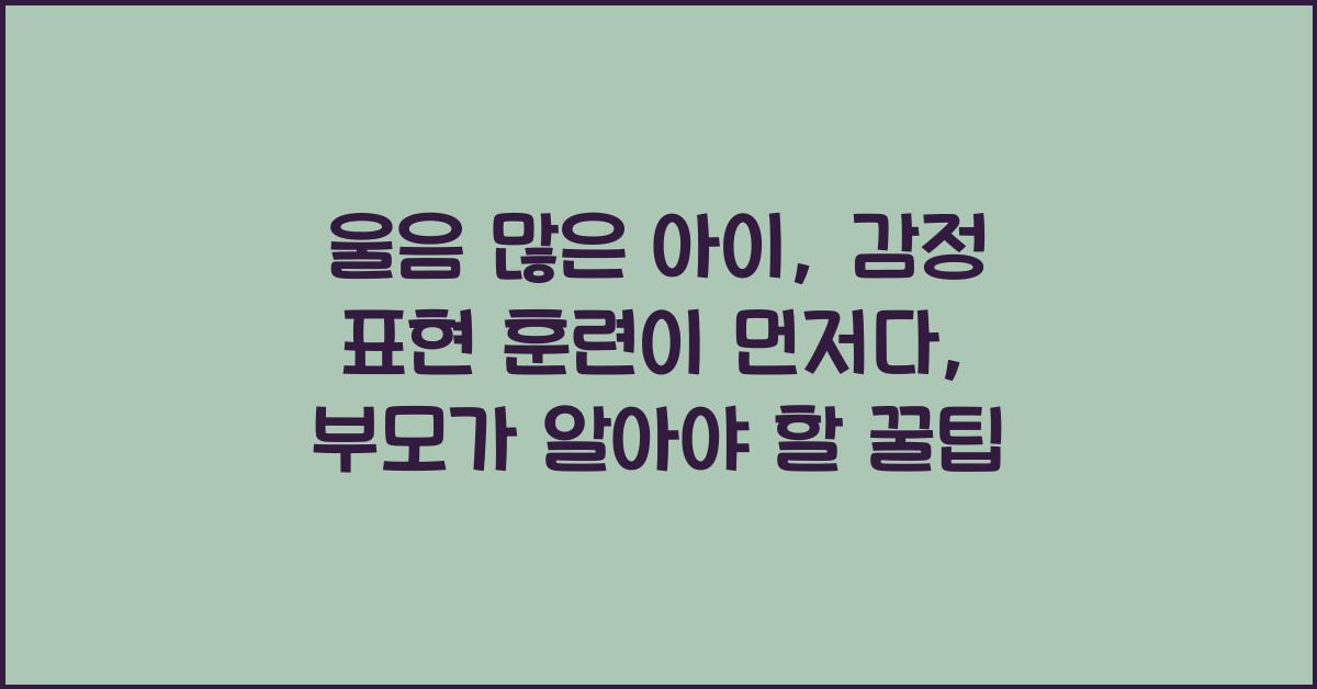 울음 많은 아이, 감정 표현 훈련이 먼저다의 중요성우리 아이의 작은 얼굴에 흐르는 눈물은 엄마 아빠의 가슴을 아프게 합니다. 그래서 그 뒤에 숨겨진 감정을 알아차리고 싶어지죠. 울음 많은 아이, 감정 표현 훈련이 먼저다! 아이들이 울음으로 감정을 표현하는 것은 그들만의 언어입니다. 하지만 이 언어가 우리 부모에게 어떤 통찰력을 줄 수 있는지 고민해 본 적이 있나요?아이들은 울음이라는 소통 방식을 통해 불안, 기쁨, 슬픔 등의 감정을 표현합니다. 그러나 자주 울게 되면 부모는 어떻게 반응해야 할지 막막할 때가 많습니다. 울음 많은 아이, 감정 표현 훈련이 먼저다라는 믿음을 가지고, 아이의 감정을 이해하고 표현할 수 있도록 도와주는 것이 중요합니다. 우리의 목표는 아이가 스스로 감정을 표현하고 조절할 수 있..