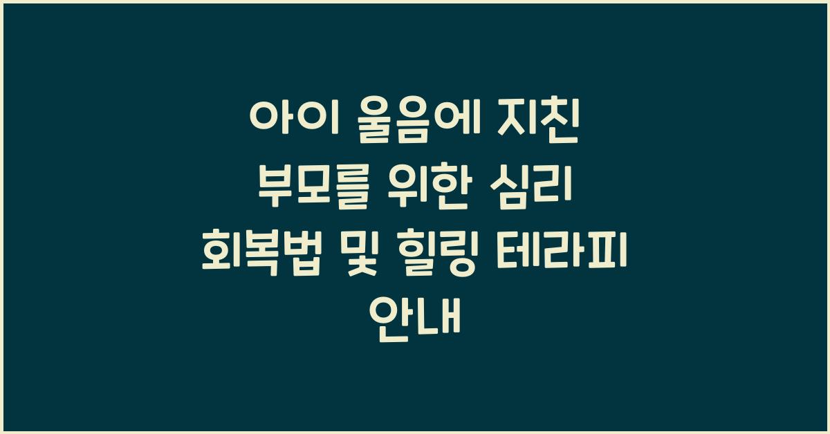 아이 울음에 지친 부모를 위한 심리 회복법 및 힐링 테라피 안내
