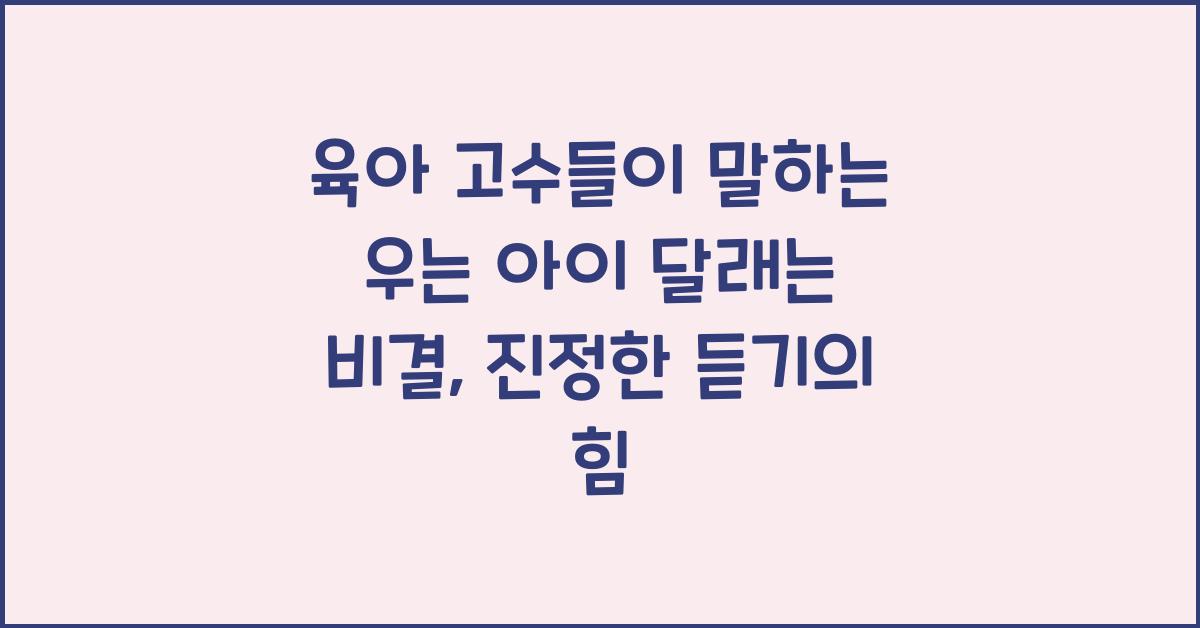 우는 아이 달래는 비결이란?아이들이 우는 것은 일반적인 현상이지만, 부모로서는 이러한 순간들이 고통스럽기도 합니다. 육아 고수들이 말하는 우는 아이 달래는 비결에 대해 살펴보면, 일단 아이의 감정을 이해하는 것이 중요합니다. 아이는 때때로 분노, 두려움, 또는 슬픔을 표현하기 위해 울곤 합니다. 이 과정에서 부모는 아이의 감정이 진실하다는 것을 인지하고, 이를 진정으로 듣는 것이 필수적입니다.부모가 아이의 말을 듣고 반응하는 방식은 아이의 정서적 안정에 큰 영향을 미칩니다. 예를 들어, 아이가 울 때 "왜 울어?"라고 묻는 것보다는 "엄마가 지금 너의 기분을 이해해"라는 반응을 보여주는 것이 더욱 효과적입니다. 그런 반응은 아이에게 안전함과 안정감을 느끼게 해주고, 그 결과 아이는 보다 쉽게 진정을 찾을..