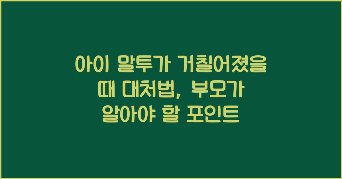 아이의 말투, 왜 거칠어졌을까?아이의 말투가 거칠어질 이유는 여러 가지가 있습니다. 우선, 사회적 환경에서의 영향을 받을 수 있습니다. 친구들과의 대화에서 유행하는 표현이나 언어 습관이 아이에게 전이된다면, 자연스럽게 거친 말투를 사용할 수 있습니다. 이런 변화는 특히 사춘기에 접어든 아이들에게 자주 나타납니다. 그러니 부모는 아이의 말투가 거칠어졌을 때 그 배경을 이해하려고 노력해야 합니다.또한, 스트레스나 불만을 표현하는 방법으로서의 거친 말투도 있을 수 있습니다. 학교에서의 갈등, 친구와의 마찰, 혹은 내면의 불안정한 감정들이 외부로 표출될 때, 아이는 더 거칠고 공격적인 방법으로 감정을 전달할 수 있습니다. 이러한 상황에서는 아이의 말투가 거칠어졌을 때 대처법을 미리 준비하는 것이 중요합니다.부모..
