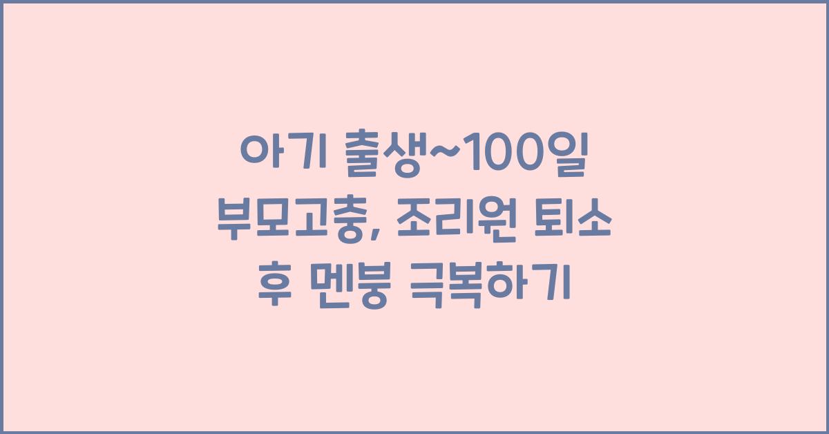 아기 출생~100일 부모고충, 조리원 퇴소 후 멘붕 극복하기