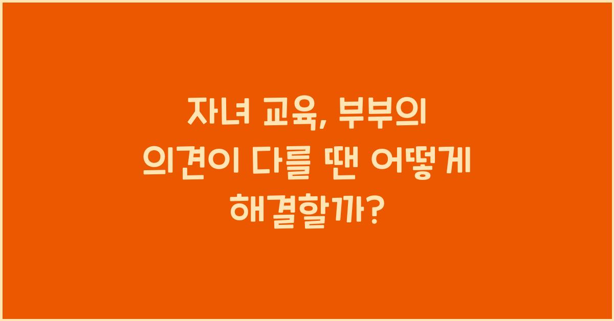 💡 자녀 교육의 중요성자녀 교육은 모든 부모에게 가장 중요한 주제 중 하나입니다. 자녀가 성장하는 동안 어떤 가치관을 심어주고, 어떤 기회를 제공할지에 대한 고민은 끝이 없는 것 같습니다. 그렇다면 자녀의 교육에 대해 부부의 의견이 다를 때, 우리는 어떻게 조율할 수 있을까요? 유감스럽게도 의견 차이는 자연스러운 부분이지만, 이를 해결하는 방법에 대해서는 좀 더 심도 깊은 논의가 필요합니다.👨‍👩‍👧‍👦 가족의 가치관 이해하기부부가 자녀의 교육에 대해 의견이 다를 때, 먼저 서로의 가치관을 이해하는 것이 중요합니다. 예를 들어, 한쪽 부모가 자녀에게 엄격한 규칙을 적용하길 원한다면, 다른 한쪽은 좀 더 자유로운 접근을 선호할 수 있습니다. 이런 차이가 생기는 배경은 각자의 어린 시절 경험이나 교..