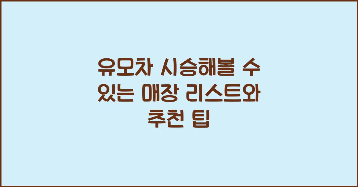 유모차 시승의 중요성유모차는 아기가 있는 가정에선 필수 아이템이지만, 어떤 유모차를 선택할지는 정말 많은 고민을 필요로 합니다. 특히, 각 유모차 브랜드와 모델마다 디자인, 무게, 기능이 다르기 때문에, 시승해보는 과정이 중요합니다. 시승을 통해 직접 밀어보며 조작해보는 것이 예약 판매나 온라인 쇼핑으로는 해낼 수 없는 부분입니다. 그래서 유모차 시승해볼 수 있는 매장 리스트가 필수죠!저 역시 처음 유모차를 고를 때는 지나치게 고민하며 힘들었는데요, 실제로 유모차를 밀어보고, 아기를 앉혀보니 각 모델의 장단점을 한눈에 알 수 있었습니다. 그때 느꼈던 '직접 시승해보길 잘했다'는 행복한 기억은 많은 예비 부모님들과 나누고 싶습니다. 여러분도 꼭 기회를 만들어 보세요!유모차 시승해볼 수 있는 매장 리스트여기..