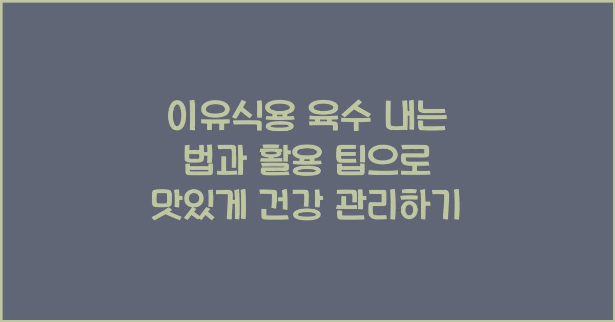 육수는 어린이의 이유식에서 중요한 역할을 합니다. 이유식용 육수 내는 법과 활용 팁을 통해 만든 육수는 아이의 건강과 성장에 큰 도움이 되며, 자연스럽고 맛있는 음식을 제공할 수 있습니다. 오늘은 육수를 만들고 활용하는 방법을 자세히 알아보도록 하겠습니다.육수의 중요성육수는 이유식의 기초가 되는 주요 재료로, 건강한 영양소가 가득 담겨 있습니다. 아이들은 이 시기에 색다른 맛을 경험하고, 영양이 풍부한 음식을 통해 면역력을 높이고 성장하는 데 큰 역할을 합니다. 이유식용 육수 내는 법과 활용 팁을 잘 알고 있으면, 자녀에게 더 좋은 음식을 제공할 수 있습니다.여러 가지 재료를 활용해서 육수를 우려내서 아기에게 조금 더 다양하고 풍부한 영양을 공급할 수 있습니다. 야채 육수, 고기 육수, 생선 육수 등 다..