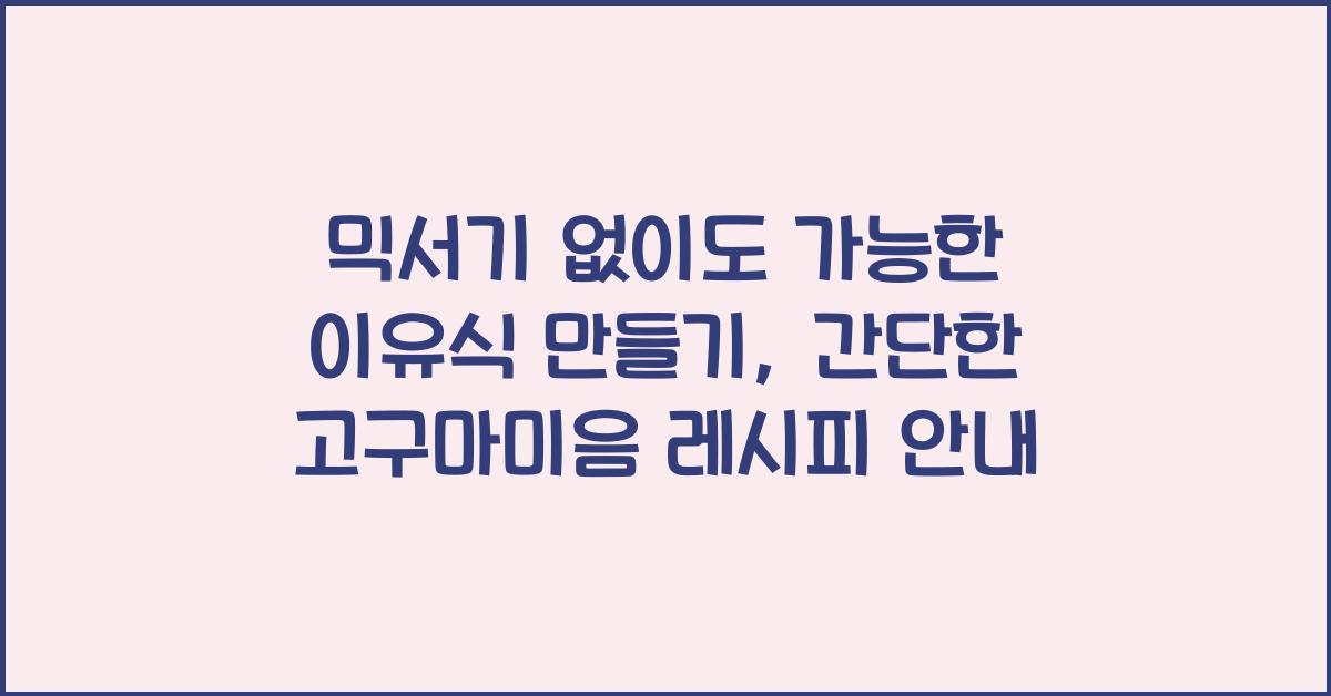 믹서기 없이도 가능한 이유식 만들기의 매력첫 아이를 키우는 부모라면 이유식을 만드는 과정이 쉽지 않다는 것을 잘 알고 계실 것입니다. 믹서기 없이도 가능한 이유식 만들기는 요즘처럼 바쁜 일상 속에서도 훌륭한 대안이 될 수 있습니다. 무엇보다 믹서기가 없어도 간단하게 만들어낼 수 있는 레시피가 있다는 사실은 많은 부모들에게 희망을 주죠.고구마는 풍부한 영양소와 부드러운 질감을 가지고 있어 이유식으로 만들기에는 최적의 재료입니다. 부모님들은 고구마를 손질하고 조리하는 과정을 통해 아이들과의 소중한 시간을 확보할 수 있습니다. 무엇보다 믹서기 없이도 가능한 이유식 만들기는 부모가 아이와 함께 조리하는 기회를 제공하면서, 부모와 아이 간의 유대감을 더욱 강화시킬 수 있죠.그렇다면 고구마미음은 어떻게 만들어야 할..